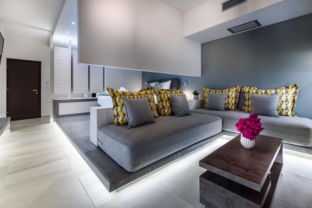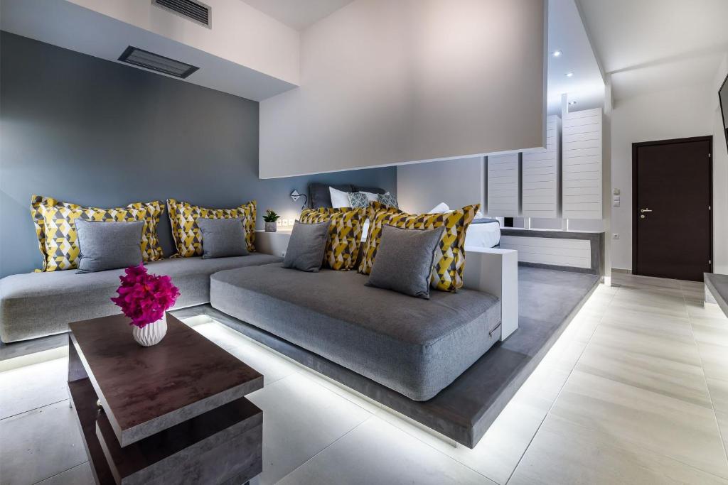 Το ξενοδοχείο διαθέτει πέντε ευρύχωρα δωμάτια, περίπου 45 τ.μ. το καθένα, με ιδιωτικό μπάνιο. Η διαρρύθμιση περιλαμβάνει ένα ημιυπόγειο επίπεδο με ένα δωμάτιο που διαθέτει ιδιωτική αυλή, καθώς και χώρο υποδοχής. Στο ισόγειο υπάρχουν δύο πλήρως εξοπλισμένα διαμερίσματα, ενώ στον πρώτο όροφο βρίσκονται δύο επιπλέον διαμερίσματα, εκ των οποίων το ένα απολαμβάνει μερική θέα στη θάλασσα.